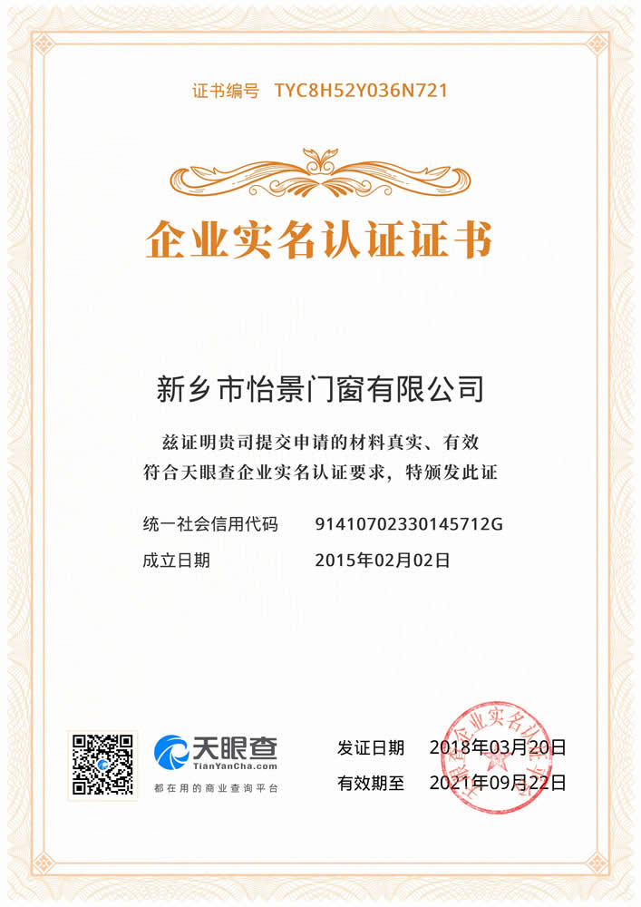 新鄉市怡景門窗有限公司是一家集生產、銷售、安裝、售后及技術服務為一體的專業化門窗企業。從個體工商戶“新鄉市紅旗區平原怡景裝飾部”到如今的”新鄉市怡景門窗有限公司”,怡景始終堅持“品質鑄就品牌”的發展戰略,主要產品有:隱形紗窗、隱形紗門、蜂巢折疊門,遮陽簾,蜂巢簾,防盜防護紗窗、框中框紗窗、金剛網紗窗、金剛網紗門、隱形防盜防護窗、新型鋁合金防盜窗、推拉活動開啟防盜窗、復合防盜窗、晾衣架批發等,所有產品均可按照客戶要求,根據客戶戶型、形狀特征和大小,為客戶“量身設計定做”相應的款式、顏色等,最大限度滿足客戶的需求。