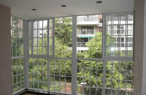 1. 防盜:窗型復合設計,內鋼外鋁,將鋼條暗裝于鋁管內有機結合為一體,二者精密結合簡要有力,確保產品的安全防盜功能,窗上裝有特種鎖,即使打碎玻璃,也無法進入室內。