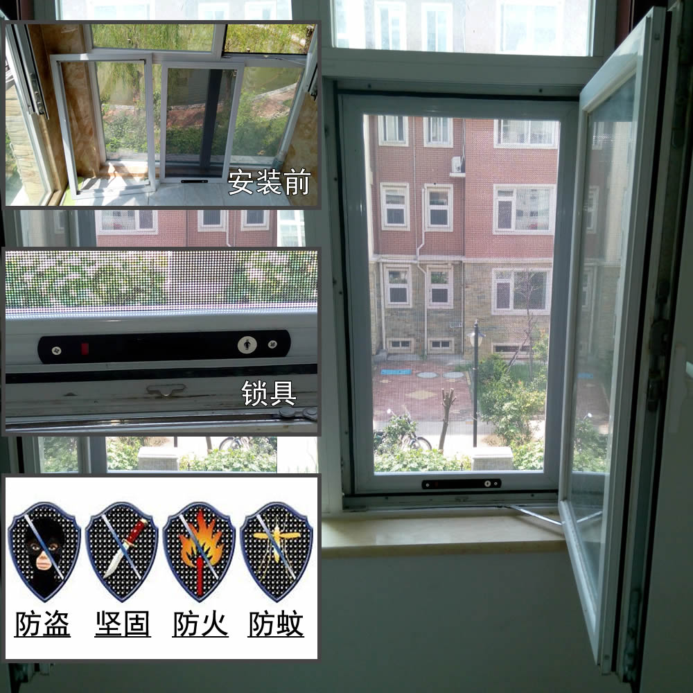 目前內開窗適用的紗窗為:上下拉回卷隱形紗窗,左右拉隱形紗窗,左右拉折疊紗窗,這些都是普通的,價格略底,其次是防護紗窗,分別是框中框防護紗窗,隱形防護紗窗,增加了防護桿