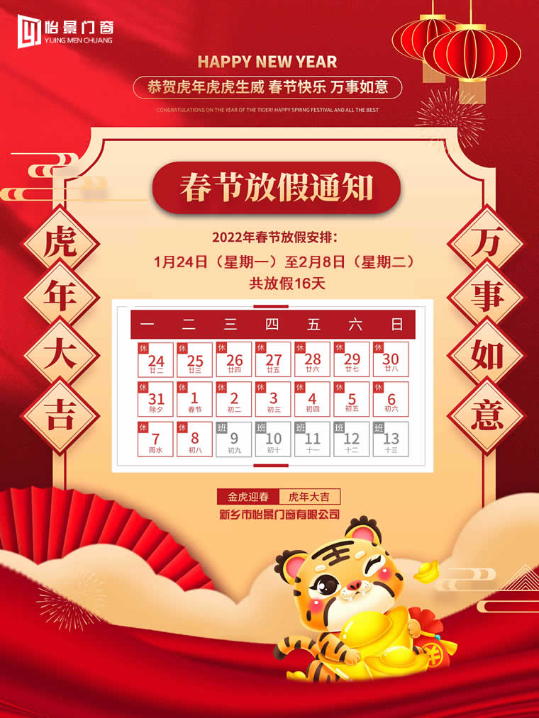 2022春節(jié)放假通知-新鄉(xiāng)怡景