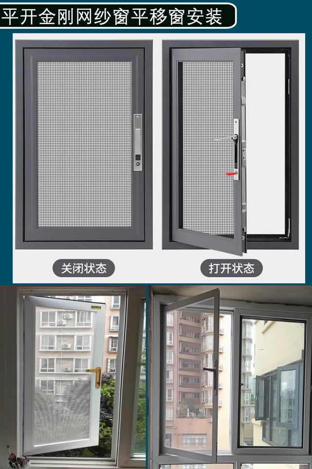 適合推拉窗平移窗安裝的新款防蚊紗窗,防盜紗窗,防護紗窗
